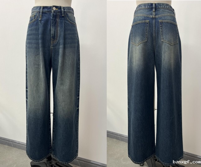 雅痞解构收折直阔腿牛仔裤